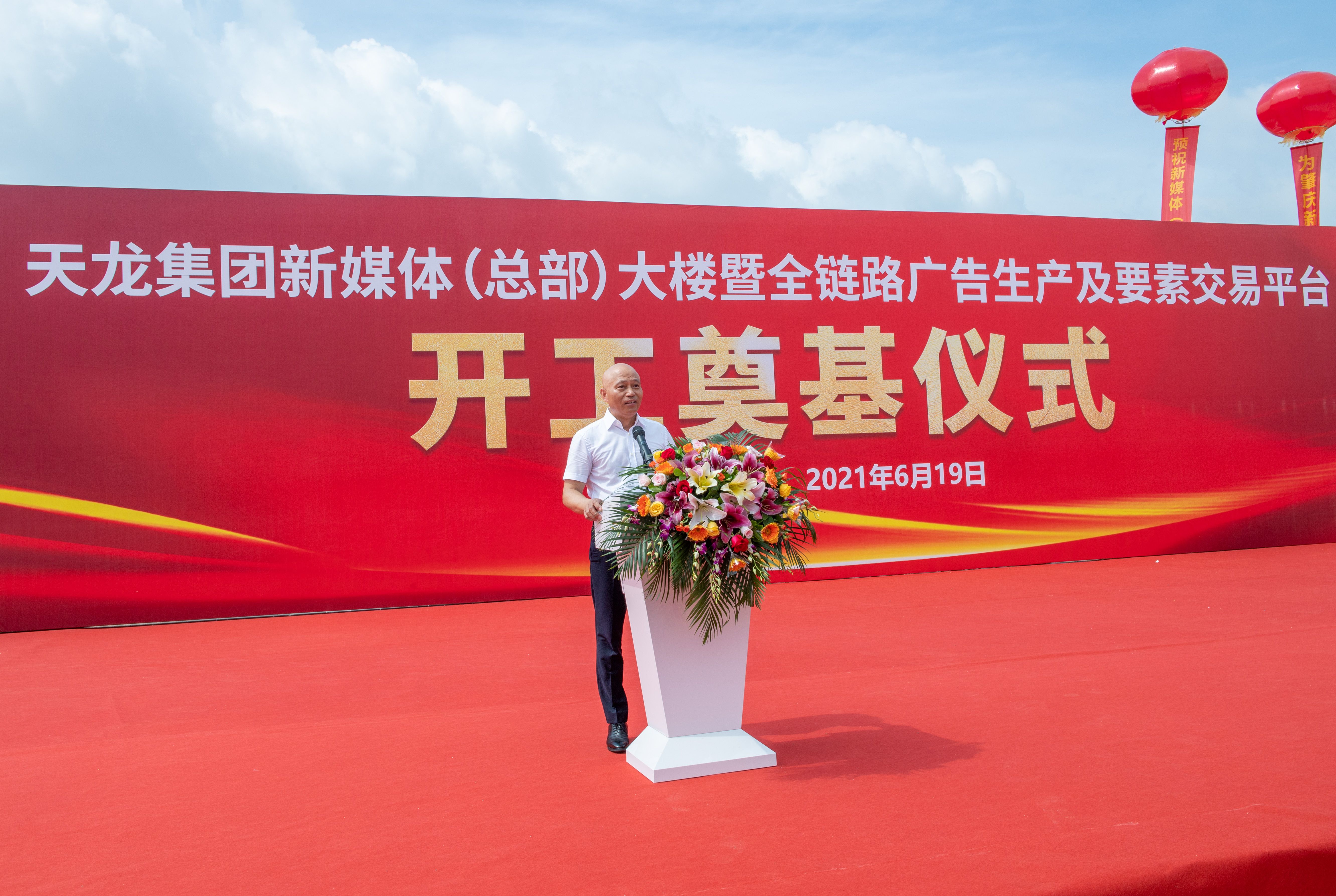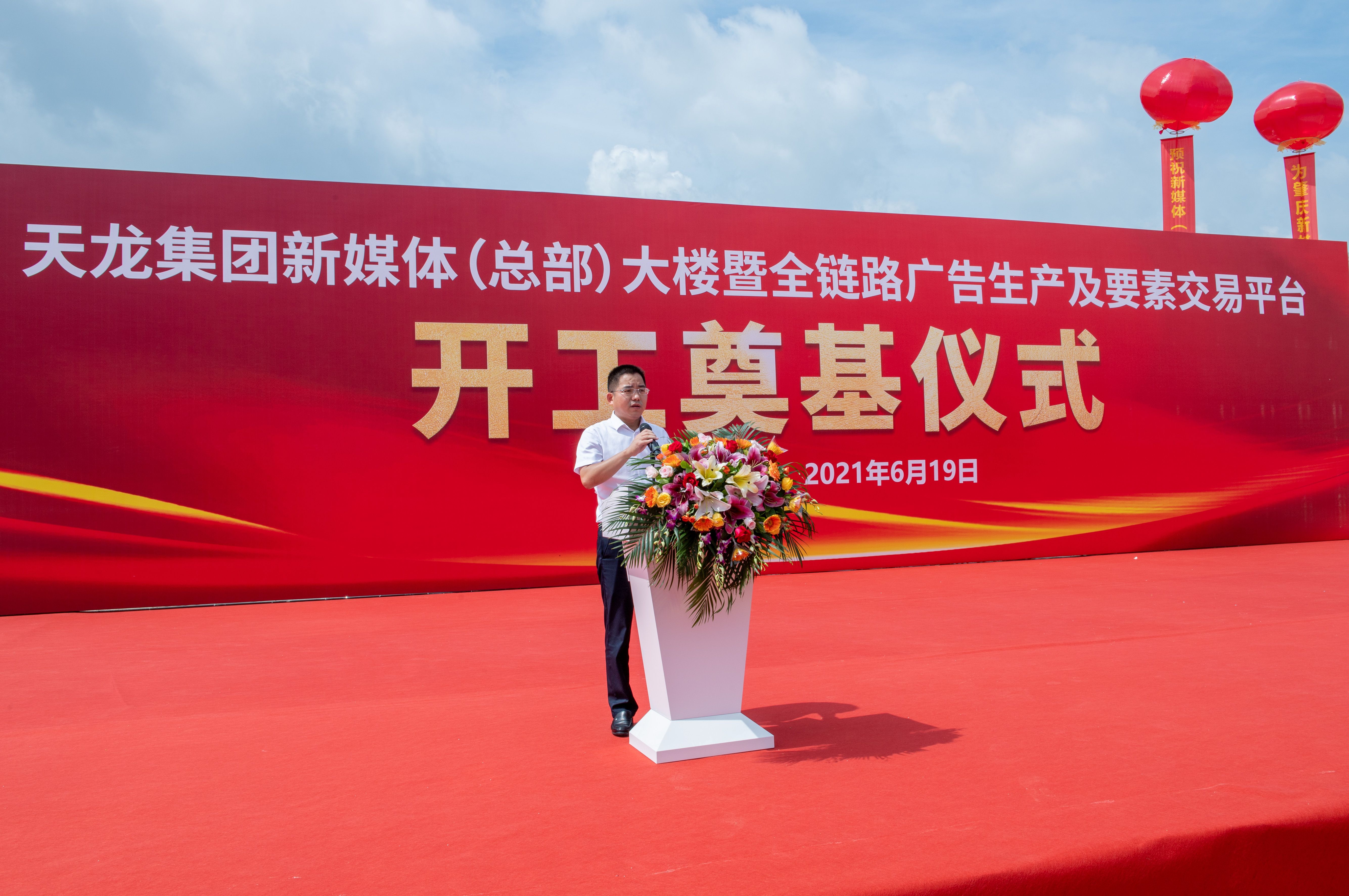 天龙集团董事长冯毅致辞表示,新媒体(总部)大楼暨全链路广告生产及要素交易平台的奠基,是天龙集团新媒体发展战略的重要布局,也将是天龙集团新媒体创新数字营销引领、向更高目标迈进的新起点。项目的达产将进一步扩大天龙集团在数字营销领域的业务规模和核心竞争力。同时对各级政府及各级主管部门对项目的大力支持表示衷心的感谢。