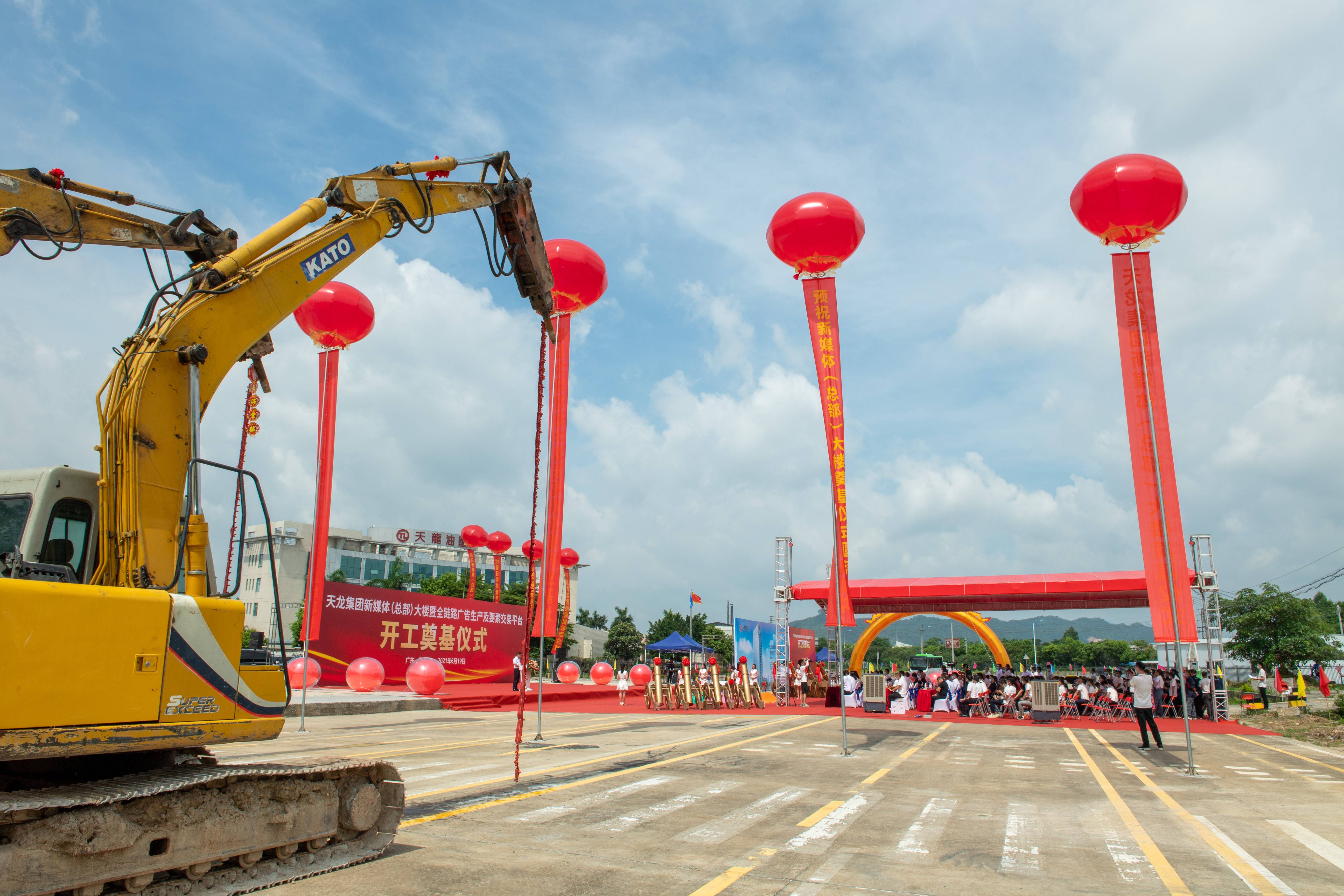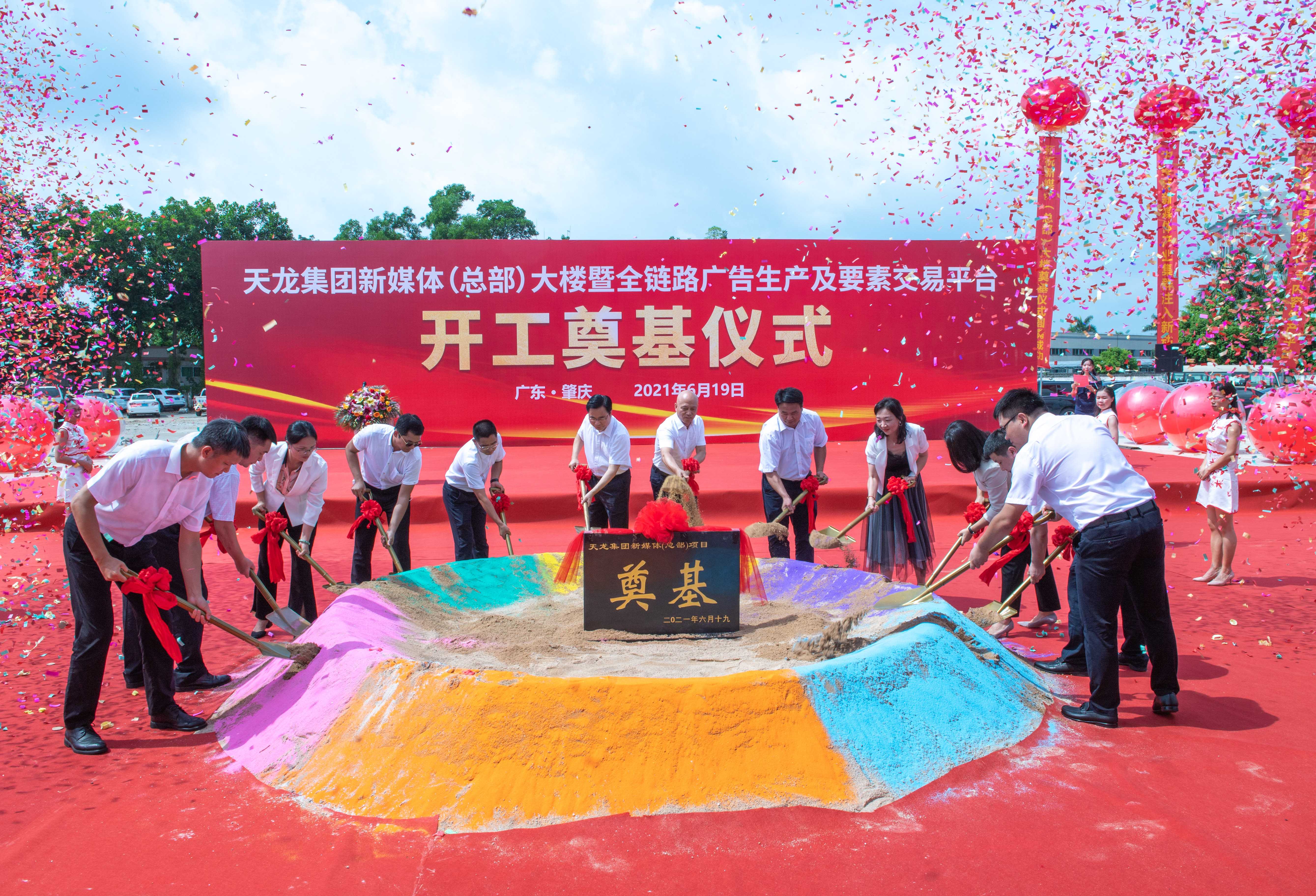 6月19日上午,天龙集团新媒体(总部)大楼暨全链路广告生产及要素交易平台在高要区金渡镇紫云大道旁隆重举行。肇庆市委常委、高要区委书记杨志,高要区委副书记、区长张浩龙,高要区副区长李冠艺等领导、嘉宾应邀出席,天龙集团董事长冯毅,副总裁梅琴、孙新、冯鸣,董事会秘书王晶等参加奠基仪式,共同见证奠基仪式盛况。