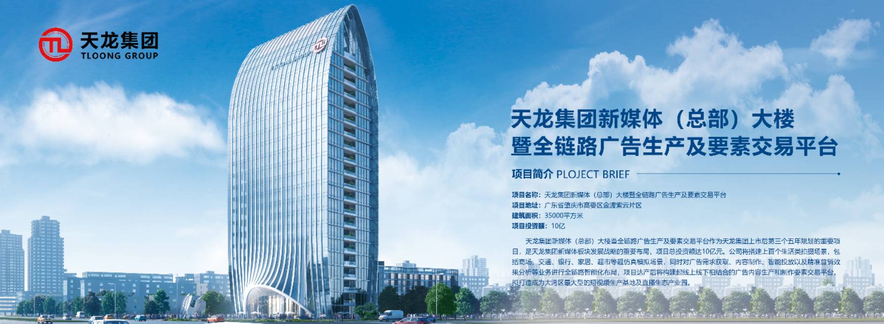 天龙集团新媒体(总部)大楼暨全链路广告生产及要素交易平台作为天龙集团上市后第三个五年规划的重要项目,是天龙集团新媒体板块发展战略的重要布局,项目总投资额达10亿元。公司将搭建上百个生活类拍摄场景,包括商场、交通、银行、家居、超市等超仿真模拟场景,同时对广告需求获取、内容制作、智能投放以及精准营销效果分析等业务进行全链路智能化布局,项目达产后将构建起线上线下相结合的广告内容生产和制作要素交易平台,拟打造成为大湾区最大型的短视频生产基地及直播生态产业园。